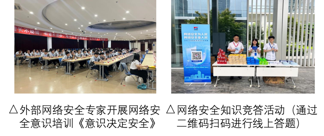 中国巨石开展了网络安全攻防演练、网络安全漏洞扫描、钓鱼邮件测试演练、网络安全意识宣传,并邀请网络安全专家开展网络安全意识培训《意识决定安全》。