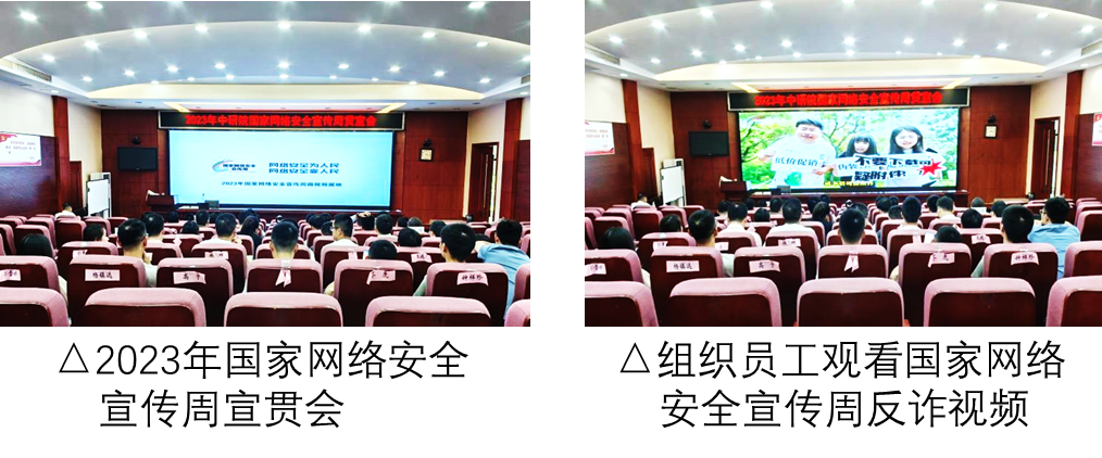 中建材玻璃研究院自主开展了2023年国家网络安全宣传周宣贯会,组织员工观看国家网络安全宣传周反诈视频,帮助下属企业更好地应对网络安全挑战。