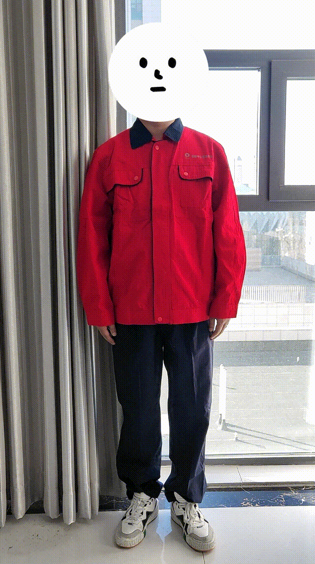 红色工装穿在身