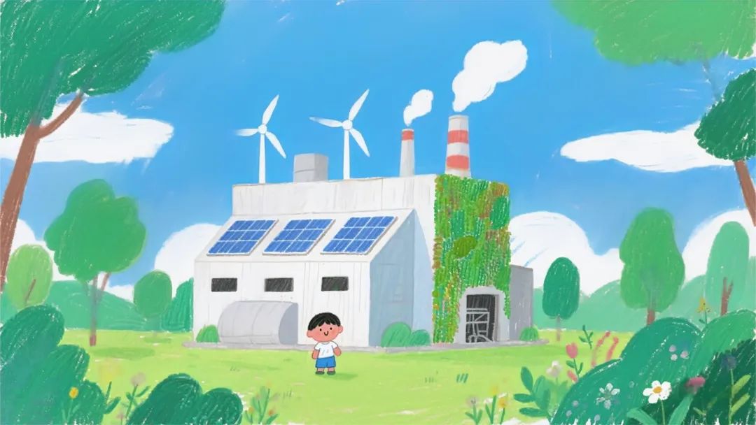 作品简介:我妈妈工作的地点是中材甘肃,那是大树环绕的绿色工厂!我用画笔记录下厂区的新面貌,蓝天下,厂房和树木和谐共生,没有灰蒙蒙的尘土,只有生机勃勃的绿色。