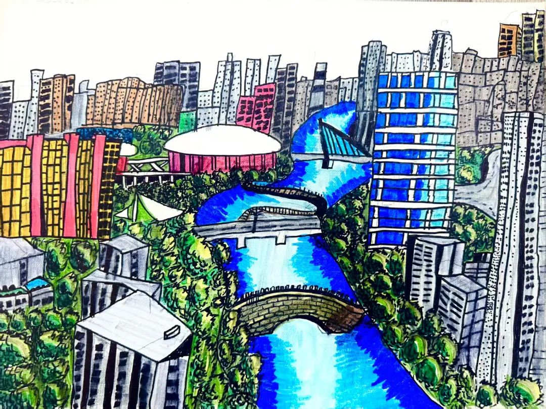 作品简介:在我眼里妈妈工作的地方就是神奇魔法部落,他们生产的水泥变成了“网红桥”、变成了高楼,妈妈说最厉害的是“建材魔法”,Ta有很多本领,可以创造未来世界。