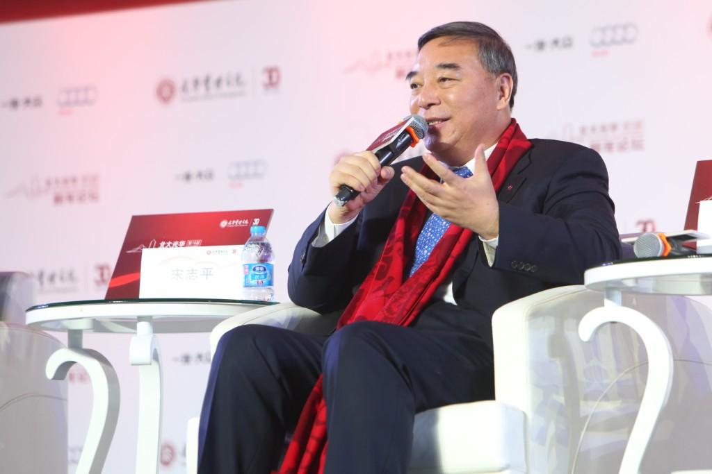 来源:CNBM 发布时间:2014-12-3112 月21 日,北京大学光华管理学院主办的“第十六届北大光华新年论坛”在北京大学举行。光华管理学院名誉院长厉以宁、亚洲基础设施投资银行多边临时秘书处秘书长金立群、北京大学常务副校长刘伟等出席,集团公司董事长宋志平应邀出席并作为嘉宾参与“高峰对话”环节。