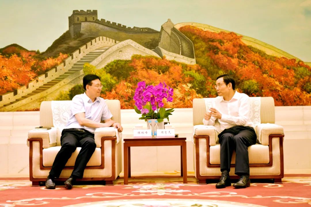 来源:中复神鹰 发布时间:2021-06-186月15日,青海省委常委、西宁市委书记陈瑞峰访问beat365体育官方网站,集团党委书记、董事长周育先会见了陈瑞峰一行。集团党委常委、副董事长李新华,党委常委、副总经理魏如山,西宁市副市长肖向东出席会见。