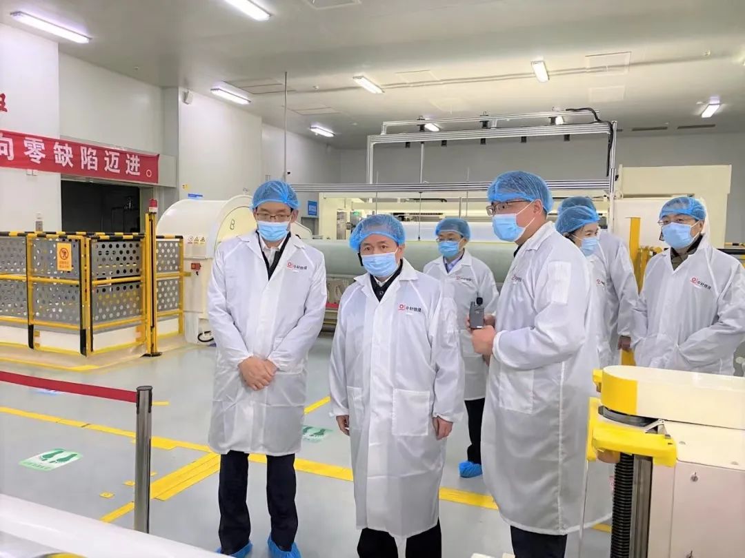 李干杰一行对枣庄进行“加快新旧动能转换,推动产业不断向高端迈进、经济发展全面绿色低碳转型”方面的调研,中材锂膜因转换成效明显被当地政府推荐为交流调研样板。李干杰考察了动力锂离子电池隔膜项目,了解了企业在生产经营、创新发展等方面的工作情况,并参观了锂膜项目一期生产线,重点询问了产品应用场景、具体性能指标、原材料供应等情况。