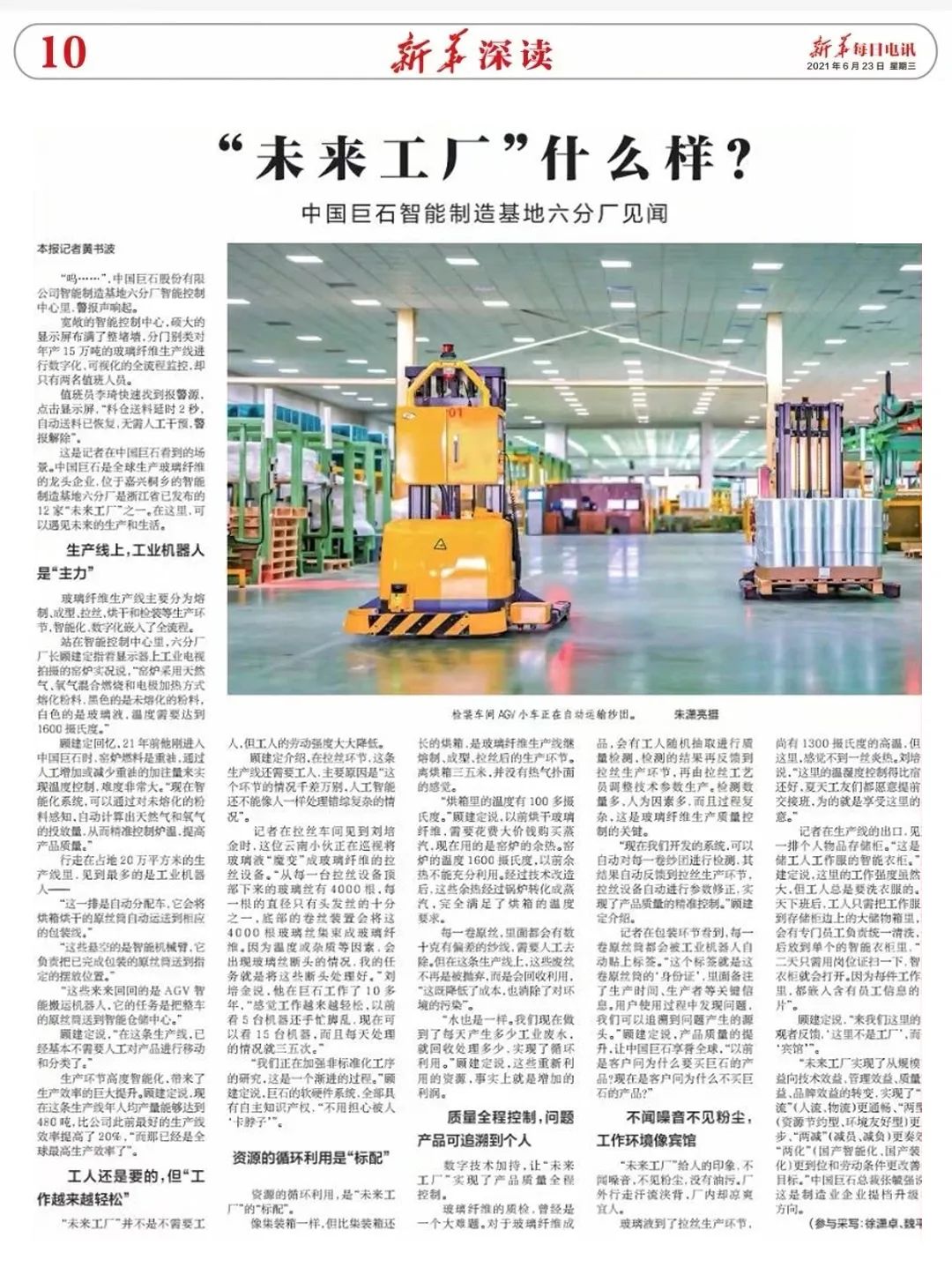 《新华每日电讯》走进中建材 | “未来工厂什么样?”去中国巨石智能制造基地看看吧