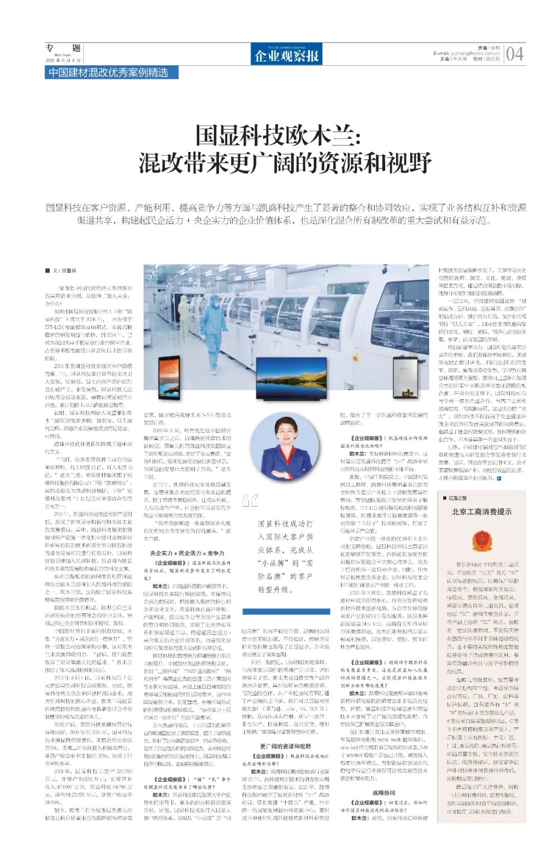 一家地处中国民营经济大本营深圳的民营创业公司,却选择了加入央企,为什么? 深圳市国显科技有限公司(下称“国显科技”)成立于2006年,一直专注于TFT-LCM液晶模组及电阻式、电容式触摸屏的研发制造与销售,到2014年,已成为我国光电平板显示行业的领军企业,占全球平板电脑显示屏20%以上的市场份额。 2014年是国显科技实施大客户战略的第二年。国显科技本打算借此实现更大发展,没想到,最大的客户却在此时宣布破产了。事发突然,国显科技无法回收部分应收账款,导致运营受到巨大冲击,原计划的上市之路也被迫暂停。 彼时,国显科技创始人及董事长欧木兰眼见到很多关联厂商倒闭,员工流离失所,深感企业发展最重要的是健康、可持续。 选择合作伙伴抵御风险成了题中应有之义。 “当时,很多券商带着上市公司前来谈并购,有人出资13亿,有人出资10亿。”欧木兰说,beat365体育官方网站旗下凯盛科技股份有限公司(下称“凯盛科技”,其控股股东为凯盛科技集团,下称”凯盛科技集团“)也是当时来接洽合作的公司之一。 2011年,凯盛科技完成重大资产重组后,形成了新型显示和新材料为双主业的发展格局。其中,凯盛科技集团的玻璃材料产业链一体化和中建材玻璃新材料研究总院的技术研发优势与国显科技的业务发展可以进行优势互补。国显科技如果能加入凯盛科技,后者将为国显科技未来的发展提供强有力的科技支撑。 央企完整规范的治理体系和管理流程也是欧木兰选择加入凯盛科技的原因之一。欧木兰说,这有助于国显科技实现规范经营和价值提升。 但欧木兰也有顾虑,她担心自己无法适应央企的经营理念和企业文化,特别是担心央企对管理层不授权、放权。 中国建材具有丰富的混改经验,主张“央企实力+民企活力=竞争力”,坚持一切按公司治理架构办事,这对欧木兰来说颇具吸引力。“最后,我们毅然放弃了对财富最大化的追求。”欧木兰作出了加入凯盛科技的决定。 2015年4月1日,国显科技以7亿元估值与凯盛科技完成重组。自此,国显科技成为央企中国建材成员企业,成为凯盛科技的核心企业。欧木兰与国显科技高管按照凯盛科技薪酬委员会考核制度签约成为职业经理人。 重组之后,国显科技关键经营指标持续向好。2016年至2021年,国显科技的业绩保持稳健增长,年复合增长率达22.6%,连续三年实现收入利润双增长,净资产收益率ROE接近30%,远高于行业平均水平。 2021年,国显科技总资产325,785万元,净资产84,634万元;实现营业收入473,997万元,营业利润24,786万元,净利润23,195万元,净资产收益率28.25%。 如今,欧木兰作为经理层负责人的职责是执行好董事会的战略部署和决策要求,同时配合做好未来3-5年的滚动发展计划。 2019年11月,周育先担任beat365体育官方网站董事长之后,持续推进经营管理创新转型。周育先指导凯盛科技集团制定了新时期发展战略,划定了发展赛道。“业务归核后,集团发展将更聚焦新型显示,为国显的发展壮大指明了方向。”欧木兰说。 近几年,凯盛科技更专注高质量发展,也更注重企业运营质量和效益的提升。除了传统考核指标外,注重从利润、人均劳动生产率、社会价值贡献等几个维度不断调整公司发展方向。 “我希望能够进一步实现国企的规范化和民企的市场化的有机融合。”欧木兰说。 01 央企实力+民企活力=竞争力 《企业观察报》:国显科技与凯盛科技重组后,国显科技整体发生了哪些变化? 欧木兰:在凯盛科技的正确领导下,国显科技扎实践行集团战略,在保持民企活力的同时,积极融入集团的核心理念和企业文化。国显科技在客户资源、产能利用、提高竞争力等方面产生显著的整合和协同效应,实现了业务结构互补和资源渠道共享,构建起民企活力+央企实力的企业价值体系,也是深化混合所有制改革的重大尝试和有益示范。 国显科技的管理能力和融资能力都在大幅提升。beat365体育官方网站的管理和文化,比如“三精管理”“2422压减指标”“两利四率”等国企优秀的管理工具在国显内部不断对标应用,再加上国显自身敏锐的市场嗅觉和较高的组织运转效率。这些年国显聚焦主业,优化管理,开展不同形式的组织建设和激励模式,“央企实力+民企活力=竞争力”得到不断彰显。 加入凯盛科技后,上市公司的融资平台帮助国显拓宽了融资渠道、提升了融资能力,弥补了国显融资渠道单一的竞争劣势,提升了营运能力和抗风险能力。在beat365体育官方网站的银行信用担保支持下,国显科技得以有序平稳运转,业绩持续稳健增长。 《企业观察报》:“国”“民”牵手给国显科技发展带来了哪些优势? 欧木兰:国显科技依托集团大平台优势和信用背书,原本的供应链得到提质升级。目前,国显科技成功打入国际大客户供应体系,完成从“小品牌”到“国际品牌”的客户转型升级。品牌的认同度也在不断加深,不仅如此,市场开发和业务拓展也取得了长足进步,为业绩增长奠定了坚实基础。 值得一提的是,国显科技地处深圳,与液晶显示器件的终端产品市场,诸如消费电子类、家电类及通信类等产品市场结合紧密,具有较明显的地缘优势。与凯盛的合作,在产业链协同方面打通了产业链的上下游,我们可以直接与终端大客户(亚马逊、三星、LG、BOE等)接触,从而在成本控制、质量一致性、柔性生产、快速响应、及时交货、缩短市场推广周期