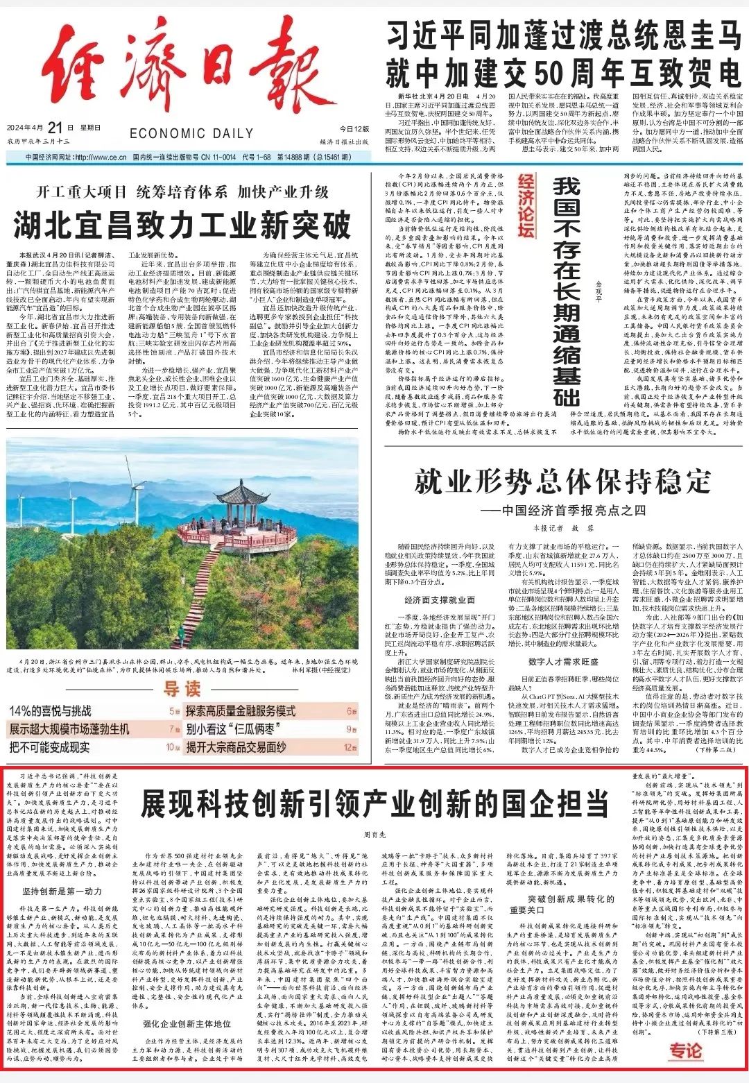 《经济日报》专论 | 周育先:展现科技创新引领产业创新的国企担当
