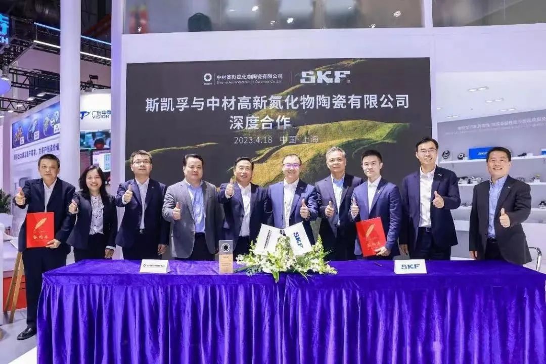 近日,中材高新氮化物陶瓷有限公司与斯凯孚正式签署合作意向书,携手拓展陶瓷球优质化、本地化、规模化应用前景。双方将充分发挥各自在氮化硅材料、陶瓷球生产、轴承应用方面的优势,共同研发、生产用于包括新能源汽车、精密机床等领域的陶瓷球,为全球市场提供品质可靠的混合陶瓷球轴承产品及解决方案。