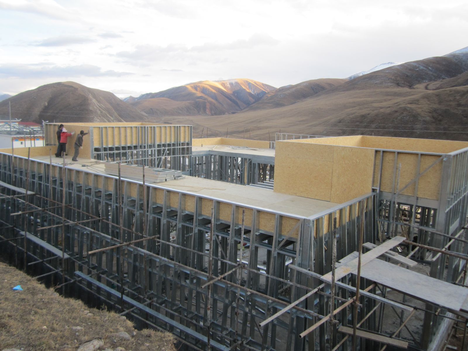 在前后方的共同努力下,项目组成员克服重重困难,历经一个半月,两个村民综合活动中心的房屋主体工程已基本完工,项目进入紧张有序的内外装阶段。目前,玉树当地已进入冬季,气候条件更加恶劣,施工更为困难,但项目组仍坚守在玉树前线,全力确保11月中旬项目完工。