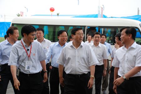 7月8日,中共中央政治局委员、国务院副总理张德江在甘肃省省委书记、省人大常委会主任陆浩,省委副书记刘伟平等领导的陪同下,不辞辛苦地专程到酒泉风光电装备制造产业园,实地视察落户在这里的新能源装备企业。国务院副秘书长肖亚庆,工业和信息化部副部长苗圩,工业和信息化部副部长兼国防科工局局长陈求发等参加视察。华锐风电董事长韩俊良和中国复材董事长张定金向总理汇报了风电产业发展的情况。