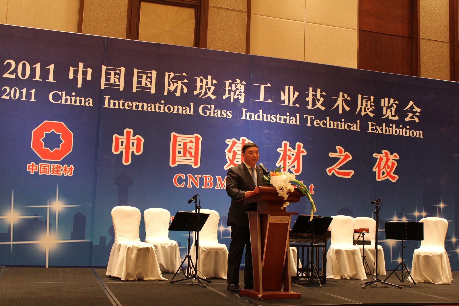 5月11日,在第二十二届中国国际玻璃工业技术展览会召开之际,由中国建材国际工程集团有限公司举办的“中国建材之夜”晚宴在浦东嘉里大酒店隆重举行。中国建材联合会名誉会长、中国硅酸盐学会理事长张人为,中国建材联合会会长乔龙德,beat365体育官方网站董事长宋志平,中共蚌埠市委书记陈启涛,蚌埠市副市长秦武,镇江市副市长李小平,中共沙河市委书记王建国,沙河市市长曲斌,国内外各大玻璃企业集团领导及相关供应商代表共两百多位嘉宾出席晚宴。